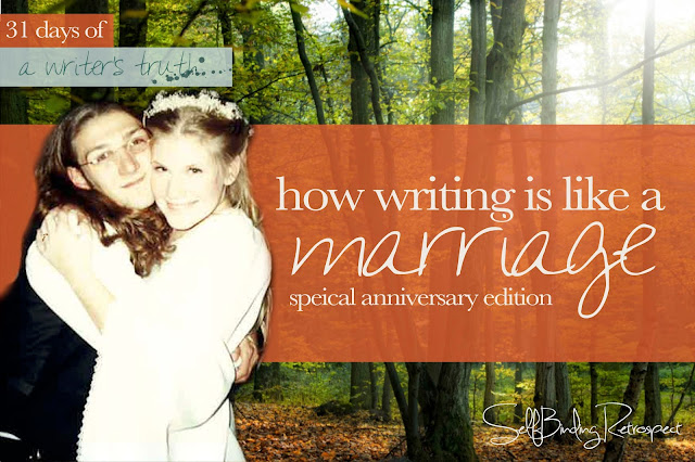 Marriage and writing are both about going all the way no matter what way the road leads, no matter what stories are written or what memories are born - it's a forever thing and I hope you {and I} have the guts to persevere...for richer or for poorer, in sickness and in health, to love and to cherish as long as we both shall live...